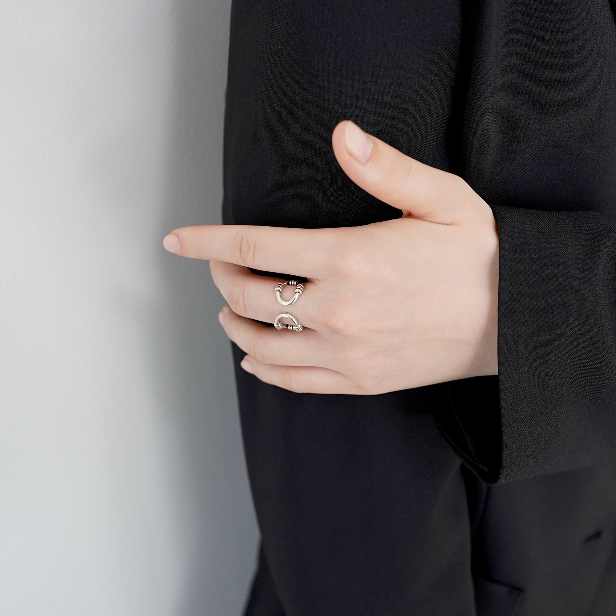 大胆に結び合わされたラインが目を引くBold Knot Ring。